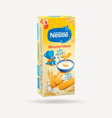 Τα Nestlé Μπισκοτάκια περιέχουν 74% δημητριακά και είναι εμπλουτισμένα με βιταμίνες και ανόγανα συστατικά καλύπτοντας μέρος των αναγκών στο πλαίσιο μιας ισσορπημένης διατροφής του παιδιού.
